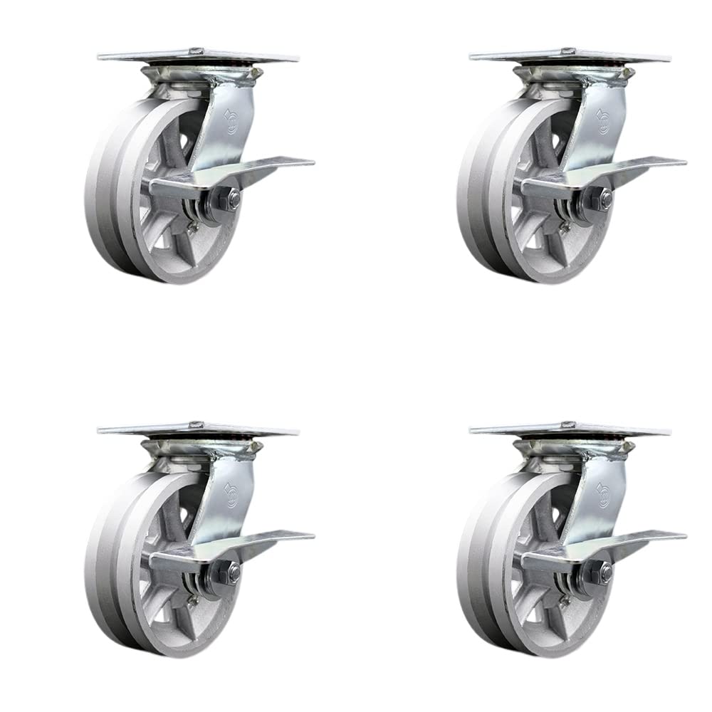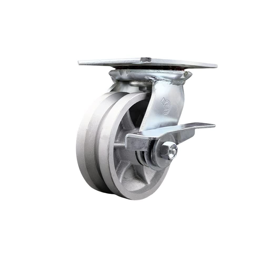 Listing is for one (1) Service Caster Series #35 rigid caster with a 4" diameter by 2" wide v-groove cast iron wheel capable of supporting 800 lbs./caster. When searching for a reliable and durable solution for heavy duty projects, consider Service Caster’s Series 35 semi steel cast iron v-groove wheel casters. The Service Caster Series #35 v-groove wheel is designed to roll on 45 degree angled track, and also has a flat face suitable for non-tracked use. The semi-steel cast iron wheel is built to withstand high capacity, heavy loads up to 1250lbs and in temperatures up to 600°F. An economic choice over steel, semi-steel wheels are abrasion resistant and rugged. Finely crafted with double ball bearing heat treated raceways, these versatile casters are ideal for a wide range of applications specific to high capacity tracked workflows, but also for dollies, platform trucks, warehouse carts and freight terminals. Or ensure a smooth and secure ride for industrial and commercial equipment. Even drywall carts, welding carts, and wall panel carts will be ready to roll on the Series 35, keeping you moving forward.