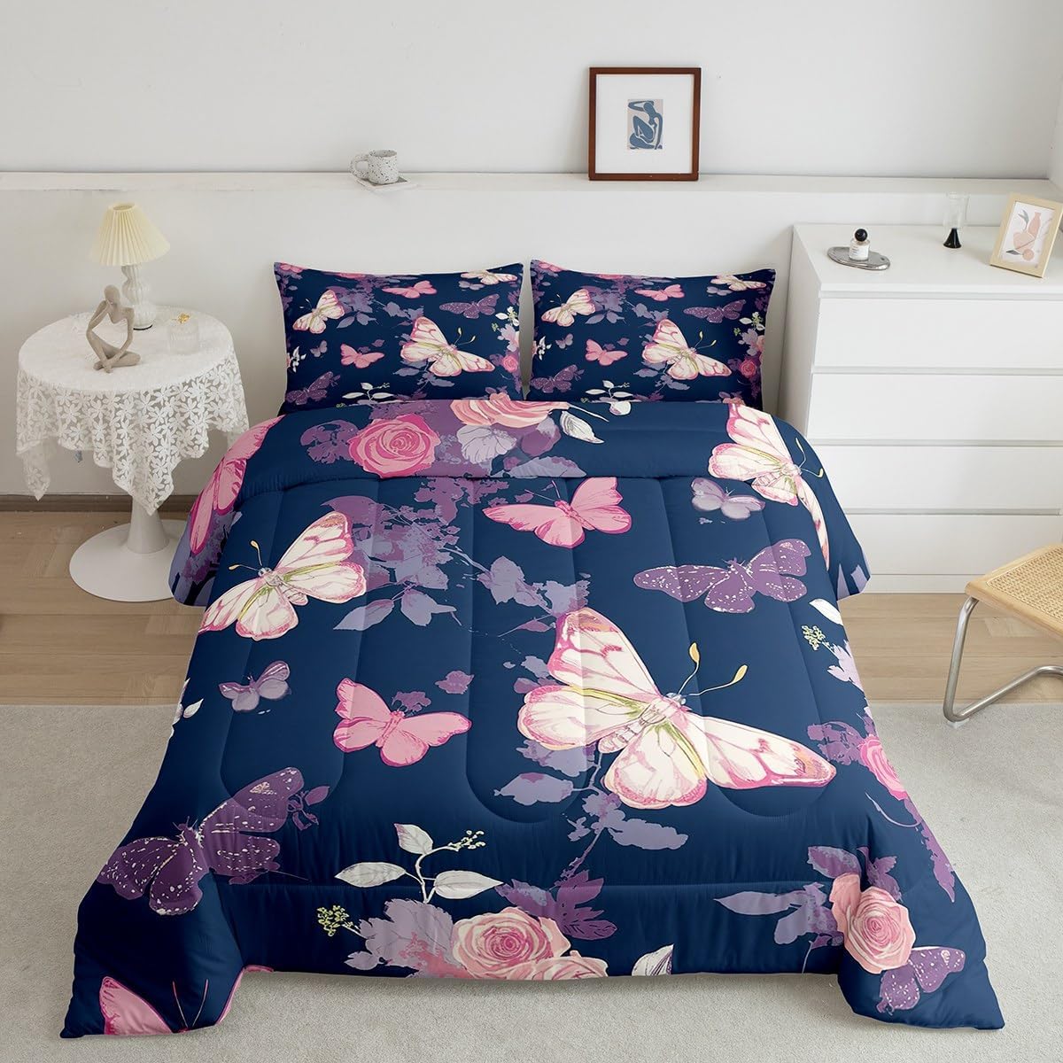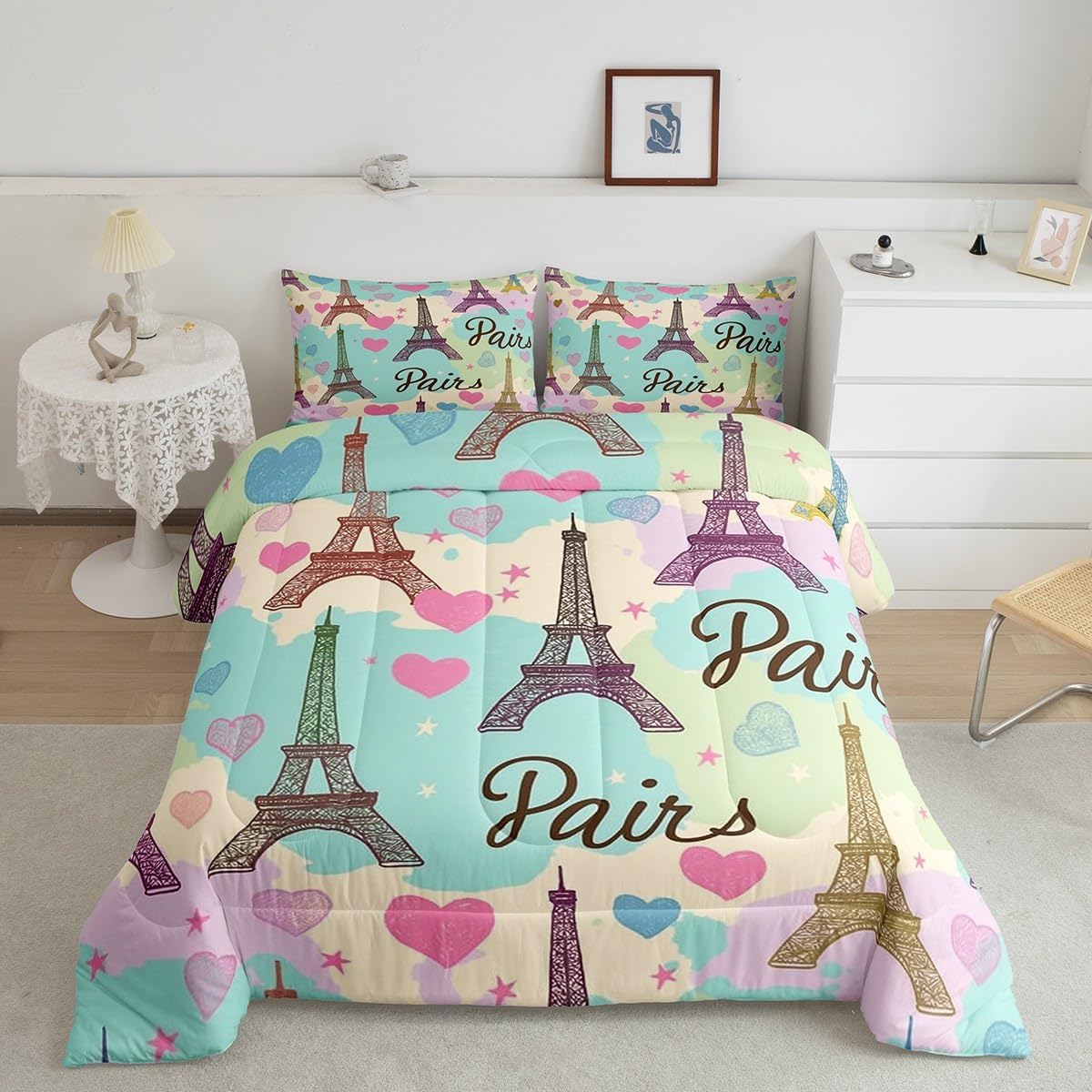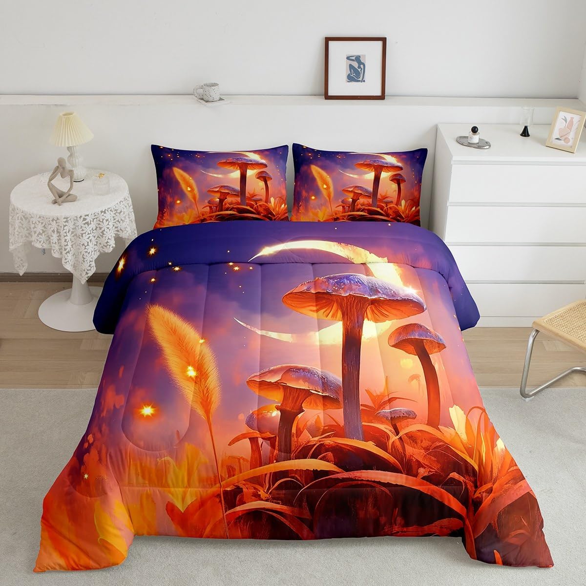 There are more options with various styles of comforter set waiting for youSize Information:1 Toddler size comforter 42" X 58" and 1 pillow sham 30" X 20".1 Twin size comforter 68" X 90" and 1 pillow sham 30" X 20".1 Full size comforter 79" X 91" and 2 pillow sham 30" X 20".1 Queen size comforter 90" X 90" and 2 pillow shams 30" X 20"1 King size comforter 104" X 90" and 2 pillow shams 36" X 20"UsefulMakeover your bedrooms all season with our comforter sets; good item for your room, girls boys youth room, master bedroom. Practical to use for being polyester which is ultra soft and breathableUnique design:Vivid colors with digital printing; these unique designs match well with various color palettes of your rugs, curtains, headboard, furniture, and all other decor accessoriesPersonalized:As manufacturers of digital printed home textiles, we follow current trends and bring you new home fashionBest blessings to your family or friend, relative or boyfriend girlfriend, or to yourself, the item should be interesting and authenticNote:The Comforter and pillow shams are printed on the front side only, the back of them are white colored