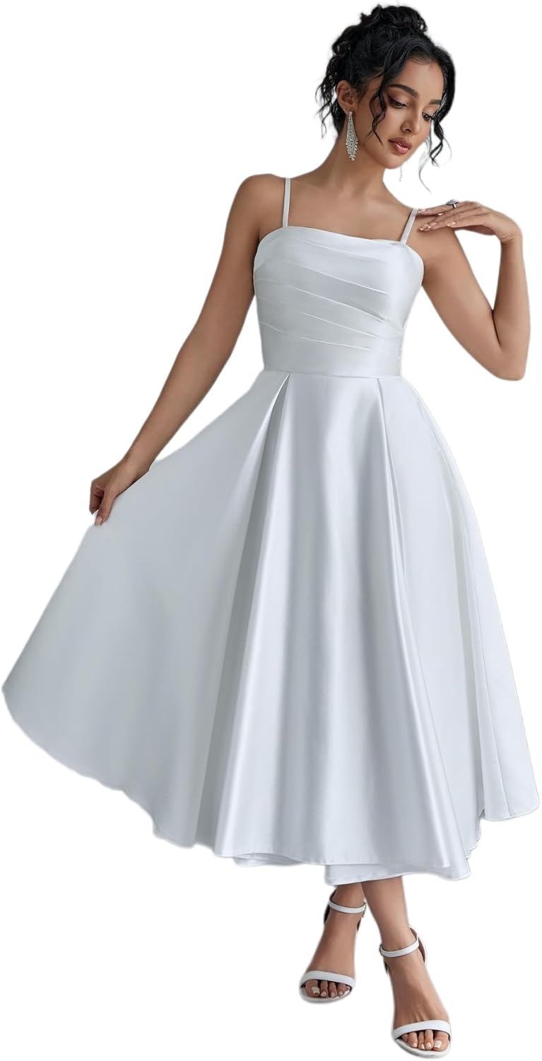 Ruched Bust Wedding Dresses for Bride, Satin Prom Dress for Women, Women's Formal Dress for Wedding Party